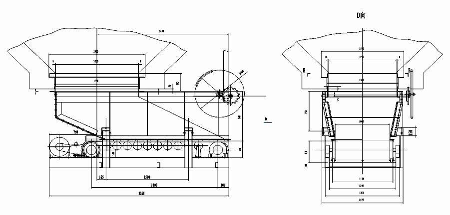 甲帶給料機有連接段、導(dǎo)料槽、閘門機構(gòu)、驅(qū)動電機、傳動滾筒、改向滾筒、環(huán)形膠帶和甲帶等組成的,環(huán)形膠帶被甲帶包裹,環(huán)形膠帶主要起牽引作用,甲帶是承載運輸物料的主要部件,這樣甲帶有效的保護了環(huán)形膠帶不被堅硬物煤、雜物劃傷、撕裂的危險。驅(qū)動裝置由減速機經(jīng)鏈輪帶動驅(qū)動滾筒;驅(qū)動裝置和甲帶給料裝置均安裝在托架上,并可調(diào)整位置;為減少摩擦力,給料機導(dǎo)料槽橫截面為倒梯形。