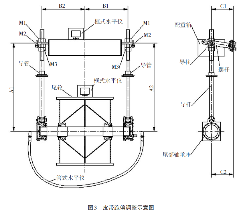 2.7 皮帶跑偏的調(diào)整(見圖3)