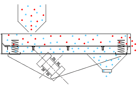 利用振動電機激振作為振動源,使物料在篩面上呈跳躍式直線向前運動,物料從給料機均勻地進入篩分機的進料口,通過多層篩網(wǎng)產(chǎn)生數(shù)種規(guī)格的篩上物、篩下物、分別從各自的出口排出。