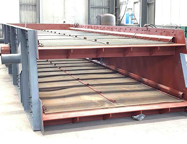 5、給料溜槽應(yīng)盡可能靠近給料端,并盡可能沿篩子全寬均勻給料,其方向與篩面上物料運(yùn)行方向一致,從而得到最佳的篩分效果。給料點(diǎn)到篩面的最大落差不大于500mm,確保物料對篩面的最小沖擊;